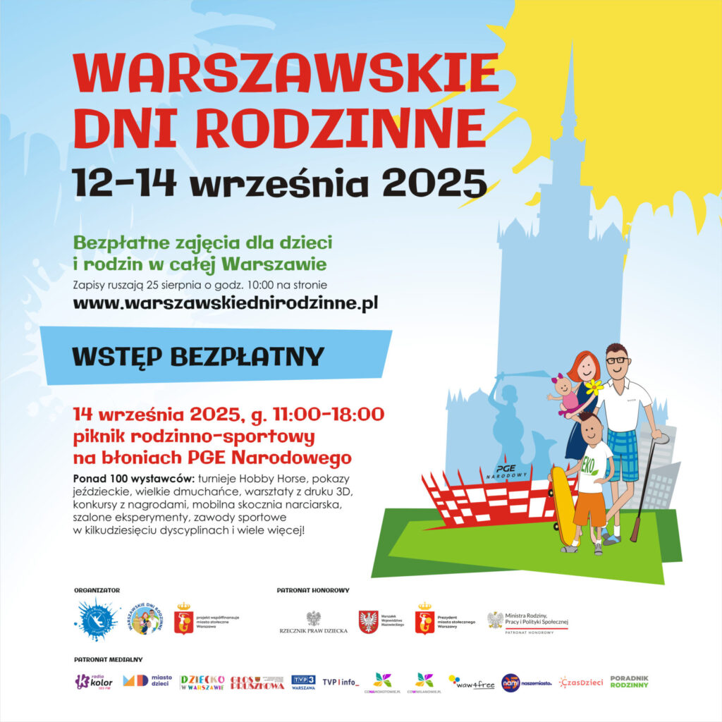 Z radością zapraszamy na 19. edycję Warszawskich Dni Rodzinnych, która odbędzie się w dniach 12–14 września 2025 roku!
