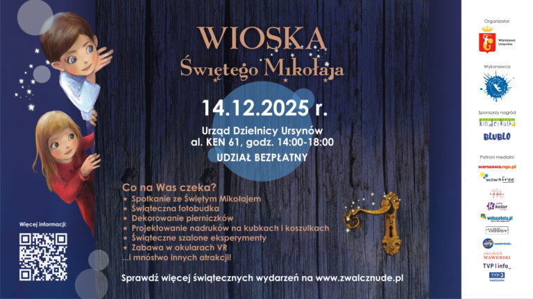Marzysz o poczuciu magii świąt w sercu Warszawy? 14 grudnia Urząd Dzielnicy Ursynów zamieni się w prawdziwą Wioskę Świętego Mikołaja! Zapraszamy na popołudnie pełne pachnących pierników, kreatywnej zabawy i niezapomnianych spotkań. Jako Fundacja Zwalcz Nudę przygotowaliśmy dla Was mnóstwo bezpłatnych atrakcji, które przeniosą każdą rodzinę prosto na Biegun Północny. Sprawdź, co zaplanowaliśmy w tym roku!.